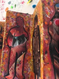 Displaying for the first time are new works by Jorge Luis Rodriguez. The Missing, Los Desaparecidos is a wall sculpture made out of papier mache with one hundred painted figures. The series presented by the West Harlem Art Fund on Governors Island for the exhibition Early Encounters, references Nature, history and the human condition. The constructed multiple modules using the technique of papier mâché and papier collé that intermix hand painted patterns onto human silhouettes. It pays homage to African and Native American ancestors who arrived to the Americas and for centuries have made significant contributions to our present society. It also speaks to the many who have perished or disappeared through time.