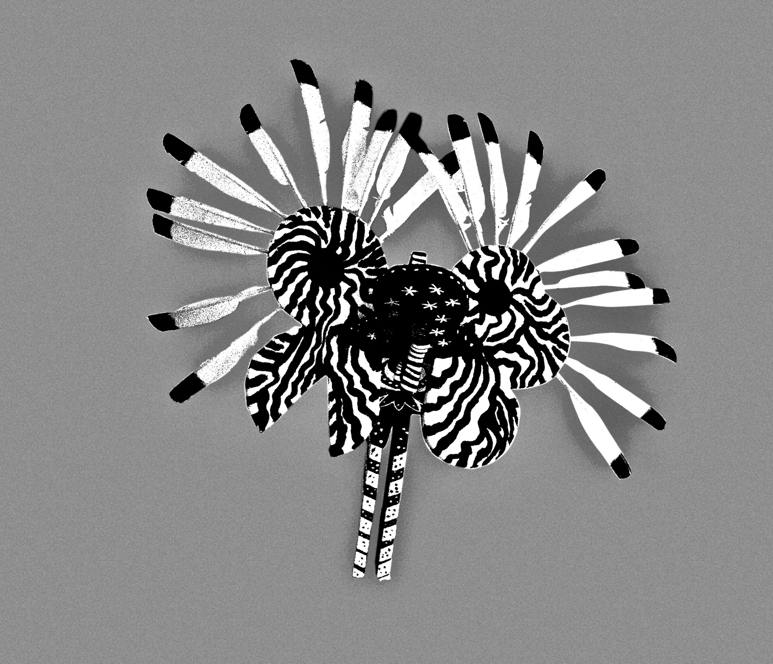 The creation of the Zebra Bird mobile –papier máché and acrylic paint– emerged from a whimsical interplay and transformation of majestic creatures of Nature extrapolated from my mixed ancestry. It alludes to the strength of diversity and resilience as one engages in a complex and multicultural society. It may well be a symbolic self portrait of the multiple attributes of my Native American, European and African ancestry.
