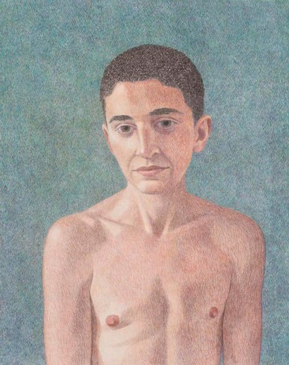 ABOUT ELIJAH BURGHER The painstakingly-crafted color pencil drawings by Elijah Burgher (b. 1978, Kingston, NY) blend abstraction with representation (typically images of nude men) in a way that literally encodes queer desire. Citing twentieth-century occultism, Burgher creates his precise backgrounds from sigils, private symbols that are readable only to the initiated. In this way, Burgher foregrounds the centrality of meaning while denying interpretation, his evocative yet coolly distanced depictions reinforce the imposed silence that undergirds his subjects’ amorous histories.
