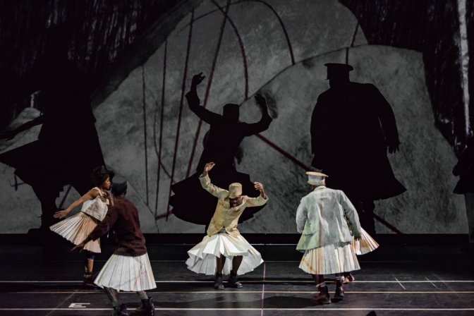 A play on the Ghanaian proverb, “the head and the load are the troubles of the neck,” the large-scale work expressively speaks to the nearly two million African porters and carriers used by the British, French, and Germans who bore the brunt of the casualties during the First World War in Africa and the historical significance of this story as yet left largely untold. This processional musical journey—as much an installation as a performance piece—melds performances by orchestra collective The Knights, and an international ensemble cast of singers, dancers, and performers accompanied by a chorus of mechanized gramophones alongside multiple film projections and shadow play to create a landscape of immense proportion and imagination that utilizes the vast sweep of the Wade Thompson Drill to upend standard notions of scale.