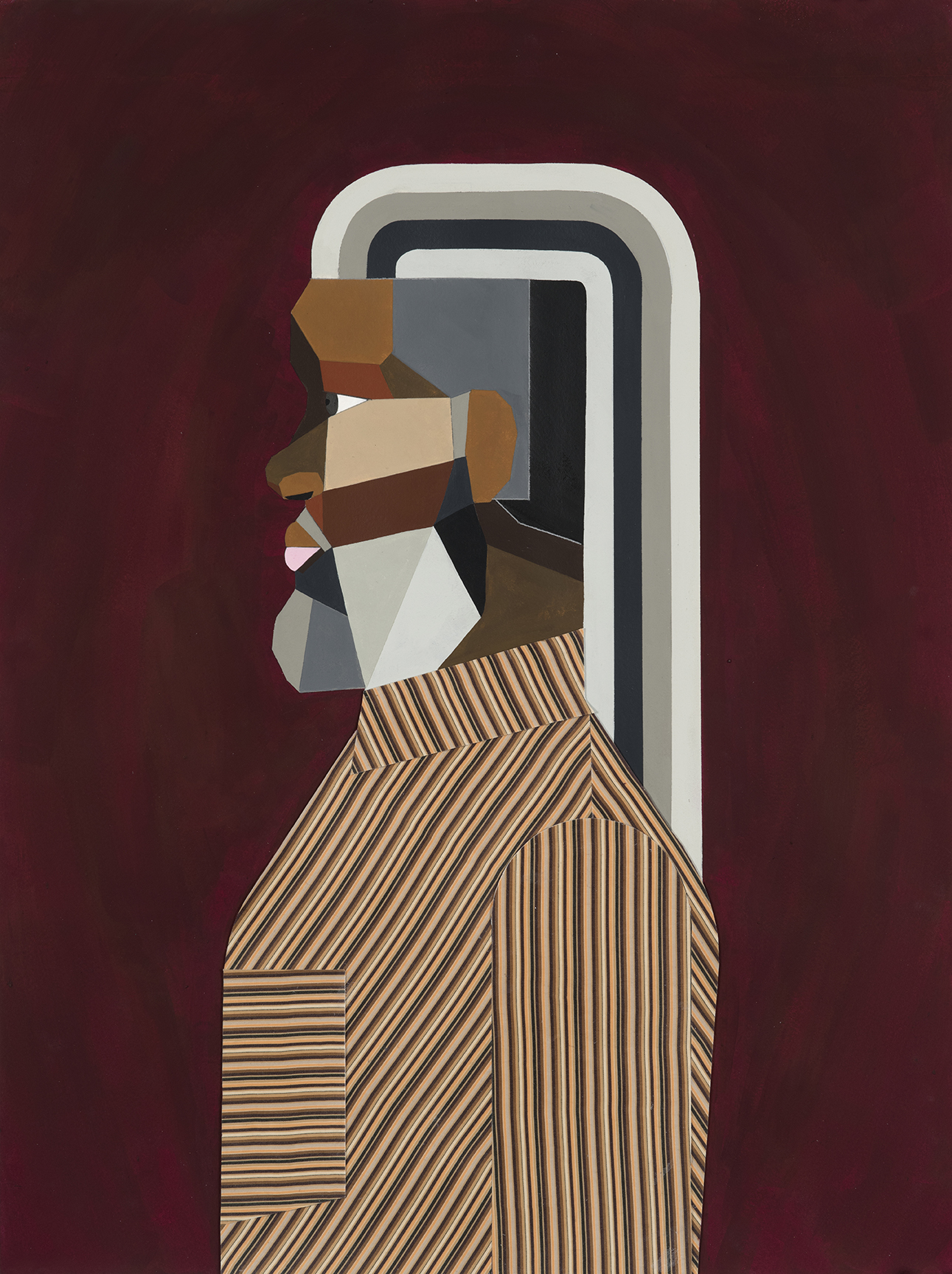 Derrick Adams is a multidisciplinary New York-based artist working in performance, video, and sound, as well as painting and sculpture. His artistic practice is rooted in Deconstructivist philosophies and the ways in which human ideals become attached to objects, colors, textures, symbols, and ideologies. Adams’ work focuses on the fragmentation and manipulation of structure and surface, exploring the shape-shifting force of popular culture on self-image and forward projection.