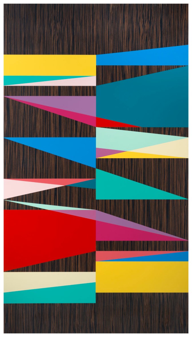 Odili Donald Odita is an abstract painter whose work explores color both in the figurative historical context and in the sociopolitical sense. Odita has said, “Color in itself has the possibility of mirroring the complexity of the world as much as it has the potential for being distinct. The organization and patterning in the paintings are of my own design. I continue to explore in the paintings a metaphoric ability to address the human condition through pattern, structure and design, as well as for its possibility to trigger memory. The colors I use are personal: they reflect the collection of visions from my travels locally and globally. This is also one of the hardest aspects of my work as I try to derive the colors intuitively, hand-mixing and coordinating them along the way. In my process, I cannot make a color twice – it can only appear to be the same. This aspect is important to me as it highlights the specificity of differences that exist in the world of people and things.” Odita goes on to express his desire to speak positively about Africa and its rich culture through his work.