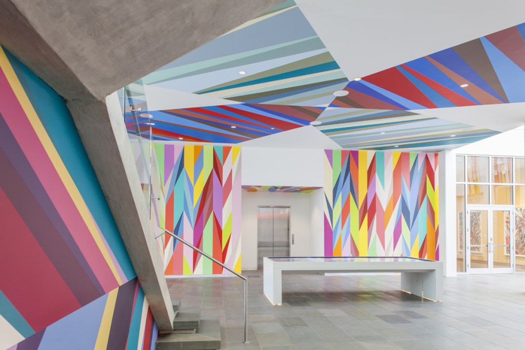 Odita was born in Enugu, Nigeria and lives and works in Philadelphia. He has exhibited extensively in the United States and internationally. Indivisible and Invincible: Monument to Black Liberation and Celebration in the City of New Orleans is on view now as part of Prospect.4, The Lotus in Spite of the Swamp. Other recent exhibitions include Heaven’s Gate, at Savannah College of Art and Design (2012-2013); Outside the Lines: Color Across the Collections, Newark Museum, New Jersey (2015-16); Represent: 200 Years of African American Art, Philadelphia Museum of Art, Philadelphia (2015); Evolving Geometries, Virginia Tech Center for the Arts (2014); and the Kiasma Museum of Contemporary Art, Helsinki, as a part of the exhibition ARS 11 (2011). In 2007, Odita’s large installation Give Me Shelter was featured prominently in the 52nd Venice Biennale exhibition Think with the Senses, Feel with the Mind, curated by Robert Storr.