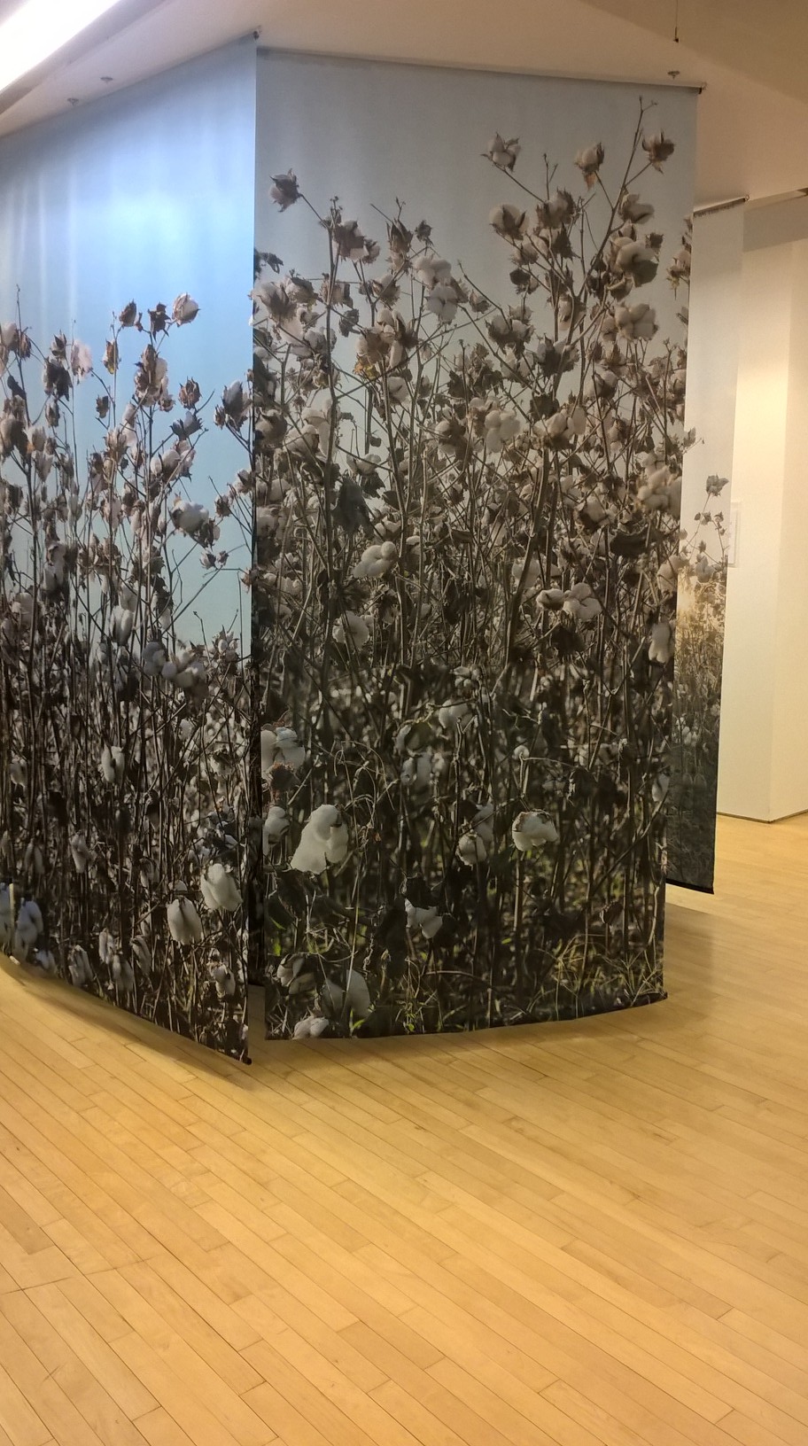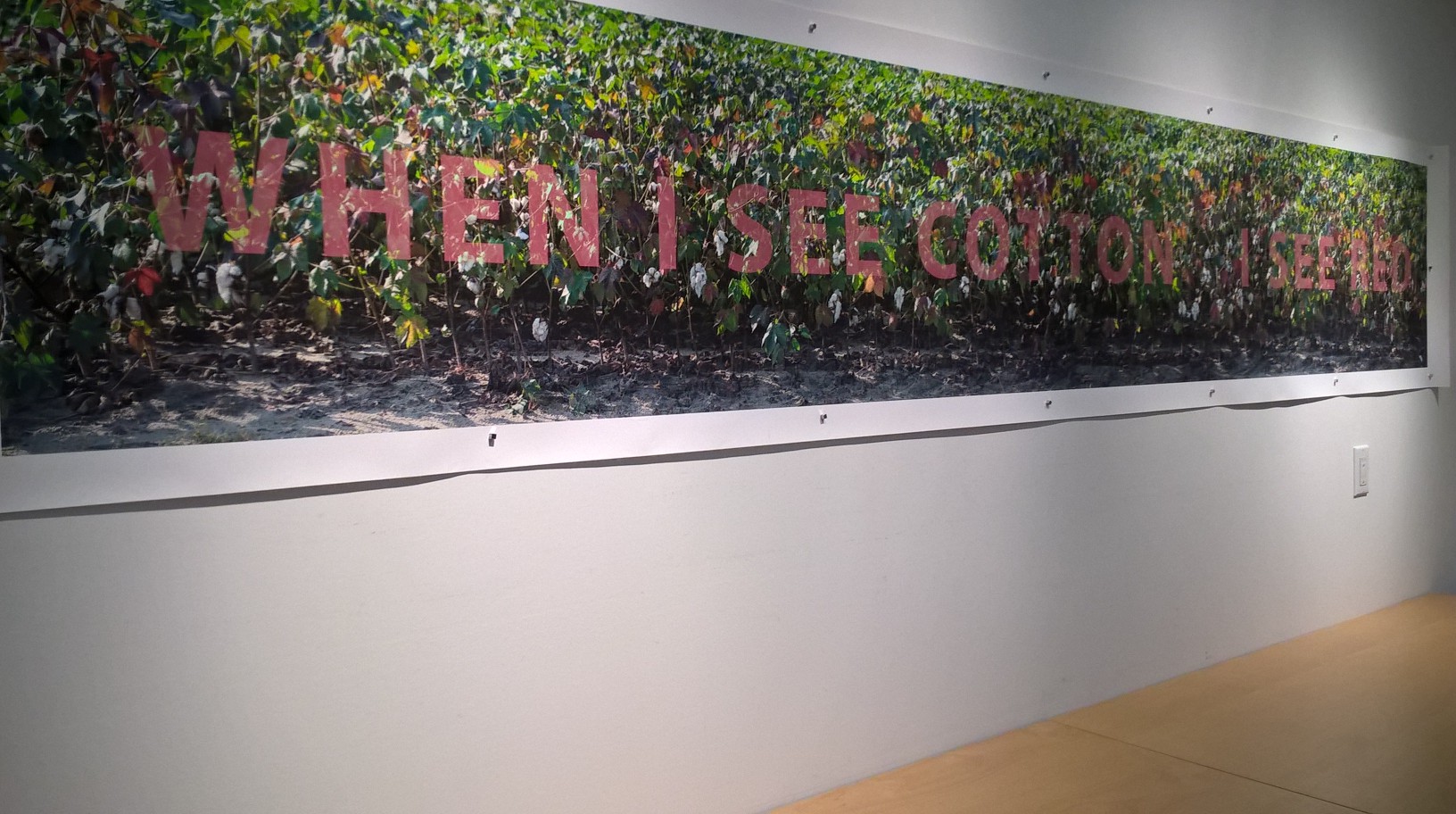 Throughout the exhibition, featuring more than two dozen photographic works made between 2016 and 2018, Dowell weaves together – both literally and figuratively –complex historical threads addressing issues of slavery, community, and memory, all intertwined with cotton. Several of the works are large panoramas, reinforcing the idea of the vastness of cotton across the southern American landscape, as well as the long-term cultural and financial impact that cotton had on the African-Americans who harvested it for their white masters.