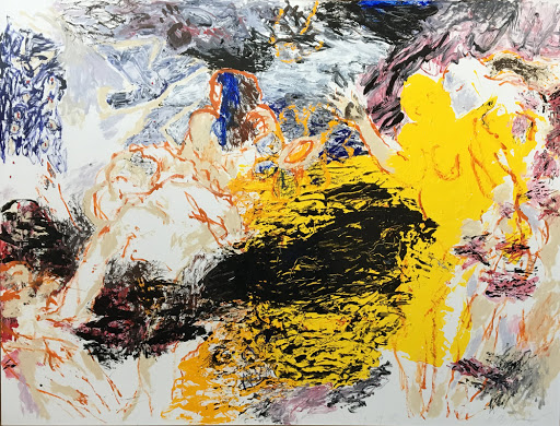 Although allusions to human form are elements that recur throughout Jackson’s body of work, he eschews characterization as a figurative painter. The bodily forms evident in his work, Jackson insists, are “paint people” who are defined by their materiality and whose “anatomy” exists only “in the paint.” Though his visual elements may seem superficially familiar, the power and fierceness of Jackson’s images derives from their ultimate ineffability: Look, painting is not a verbal language – it bypasses understanding…it is pure modality — it is about states of being. And paintings have a certain force, and they cut into you in certain places within your spirituality.