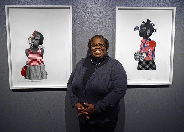 of African American girlhood that emphasizes the changeable nature of identity and its potential to both empower and oppress. The Austin-based artist uses photographs, magazine clippings, and images from the internet to emphasize the implications of societal pressures and privilege that dominate popular media. Roberts’ style of collage suggests bodily fragmentation, but the composite figures at the forefront of her world also exude imagination and uncanny vitality. Roberts presents an exploded view of beauty that makes room for excluded and marginalized narratives while fighting generalized and discriminatory perceptions of black female experiences. Asked what she hoped for viewers to take away, Roberts said, “When you look at my work, you have to look at every part of the face and make something out of those fragments. That’s one of the gifts of the work—to see people differently, and not just as one being. Blackness is global.”