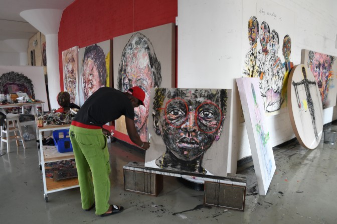Nelson Makamo paintings and art for sale are offered in a variety of materials, including charcoal, silk screen, and acrylic. His work can be found in personal collections held by Georgio Armani and Annie Lenox.
