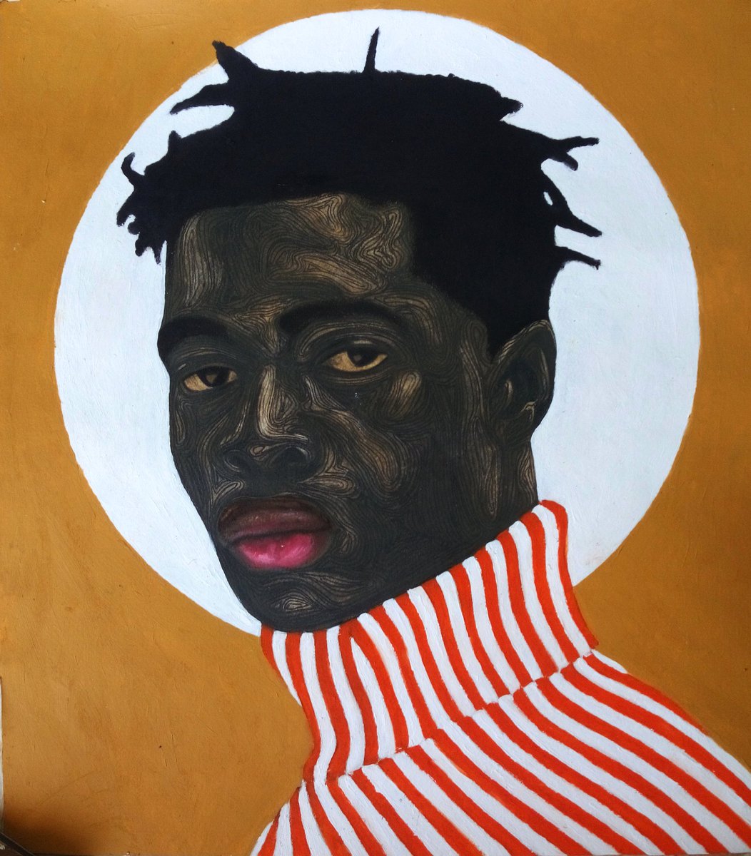 Collins Obijiaku is a young, up-and-coming artist from Kaduna, Nigeria. His work is a celebration of blackness through elegantly constructed portraits. Gazing at his paintings is to be transported into a world where black people exist for themselves, innately elegant and unfazed by the world and its never-ending problems. There is an affective connection between him and his subjects, which is made apparent by the graceful way he extends their complex personalities onto the canvas. He primarily paints his loved ones, and, at times, striking strangers he encounters in the city, perhaps as a way of inscribing them into history. Obijiaku has a notable relationship with lines; his brushstrokes are seemingly cartographic, taking the viewer into a world of wonder and magic. He also embraces digital space and wants his melanated subjects to exist beyond the present, in the boundlessness of the internet.