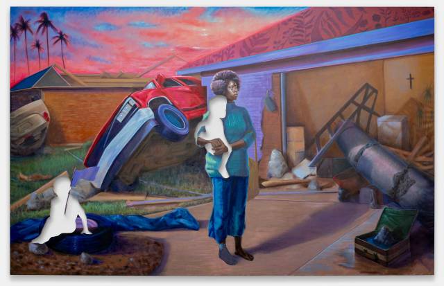 Titus Kaphar is an artist whose paintings, sculptures, and installations examine the history of representation by transforming its styles and mediums with formal innovations to emphasize the physicality and dimensionality of the canvas and materials themselves. His practice seeks to dislodge history from its status as the “past” in order to unearth its contemporary relevance. He cuts, crumples, shrouds, shreds, stitches, tars, twists, binds, erases, breaks, tears, and turns the paintings and sculptures he creates, reconfiguring them into works that reveal unspoken truths about the nature of history. Open areas become active absences; walls enter into the portraits; stretcher bars are exposed; and structures that are typically invisible underneath, behind, or inside the canvas are laid bare to reveal the interiors of the work. In so doing, Kaphar’s aim is to reveal something of what has been lost and to investigate the power of a rewritten history.