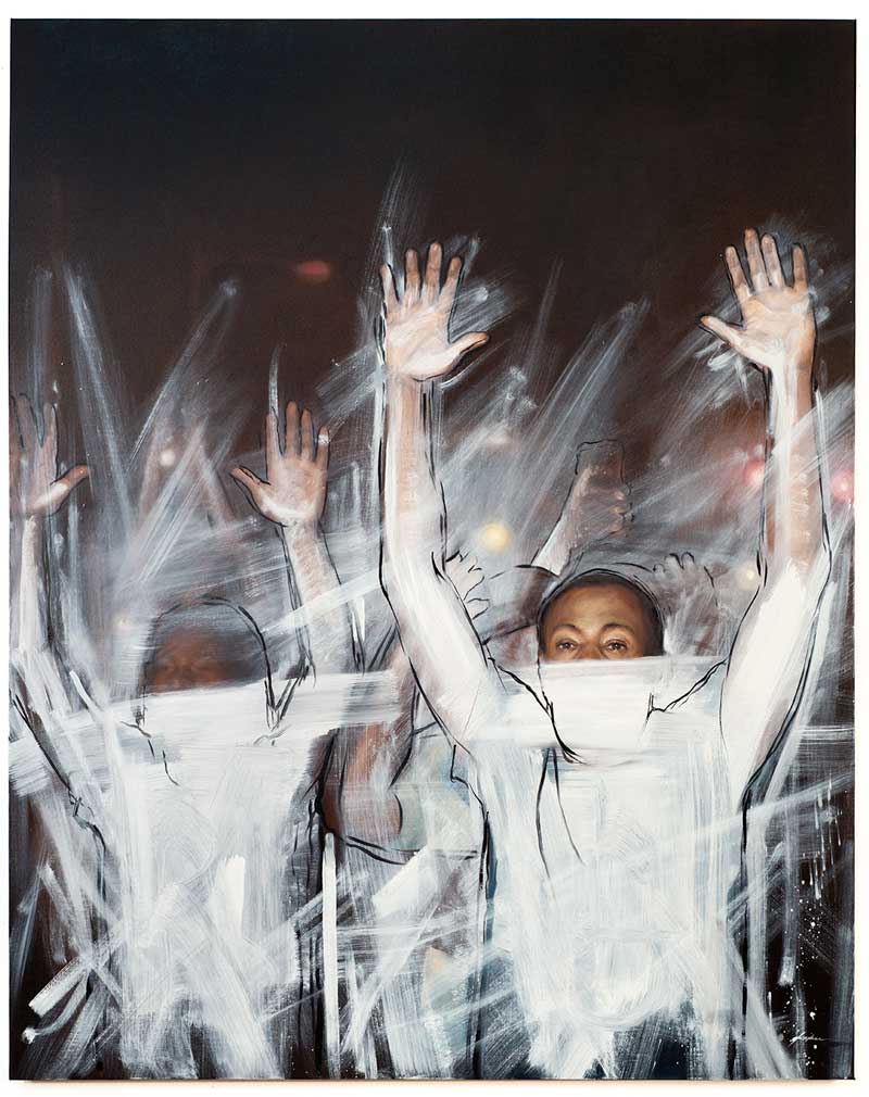 Titus Kaphar was born in 1976 in Kalamazoo, Michigan and lives and works in New Haven, CT. Kaphar received an MFA from the Yale School of Art and is a distinguished recipient of numerous prizes and awards including a 2018 MacArthur Fellowship, a 2018 Art for Justice Fund grant, a 2016 Robert R. Rauschenberg Artist as Activist grant, and a 2015 Creative Capital grant. Kaphar’s work, Analogous colors, was featured on the cover of the June 15, 2020 issue of TIME. He gave a TED talk at the annual conference in Vancouver 2017, where he completed a whitewash painting, Shifting the Gaze, onstage. Kaphar’s work has been included in solo exhibitions at the Seattle Art Museum, the Studio Museum in Harlem, MoMA PS1 and the National Portrait Gallery in Washington, DC, among others. His work is included in the collections of Crystal Bridges Museum, Bentonville, AK; the 21C Museum Collection; The Museum of Modern Art, New York, NY; Brooklyn Museum, Brooklyn, NY; the Yale University Art Gallery, New Haven, CT; and the Pérez Art Museum Miami (PAMM), Miami, FL, amongst others.
