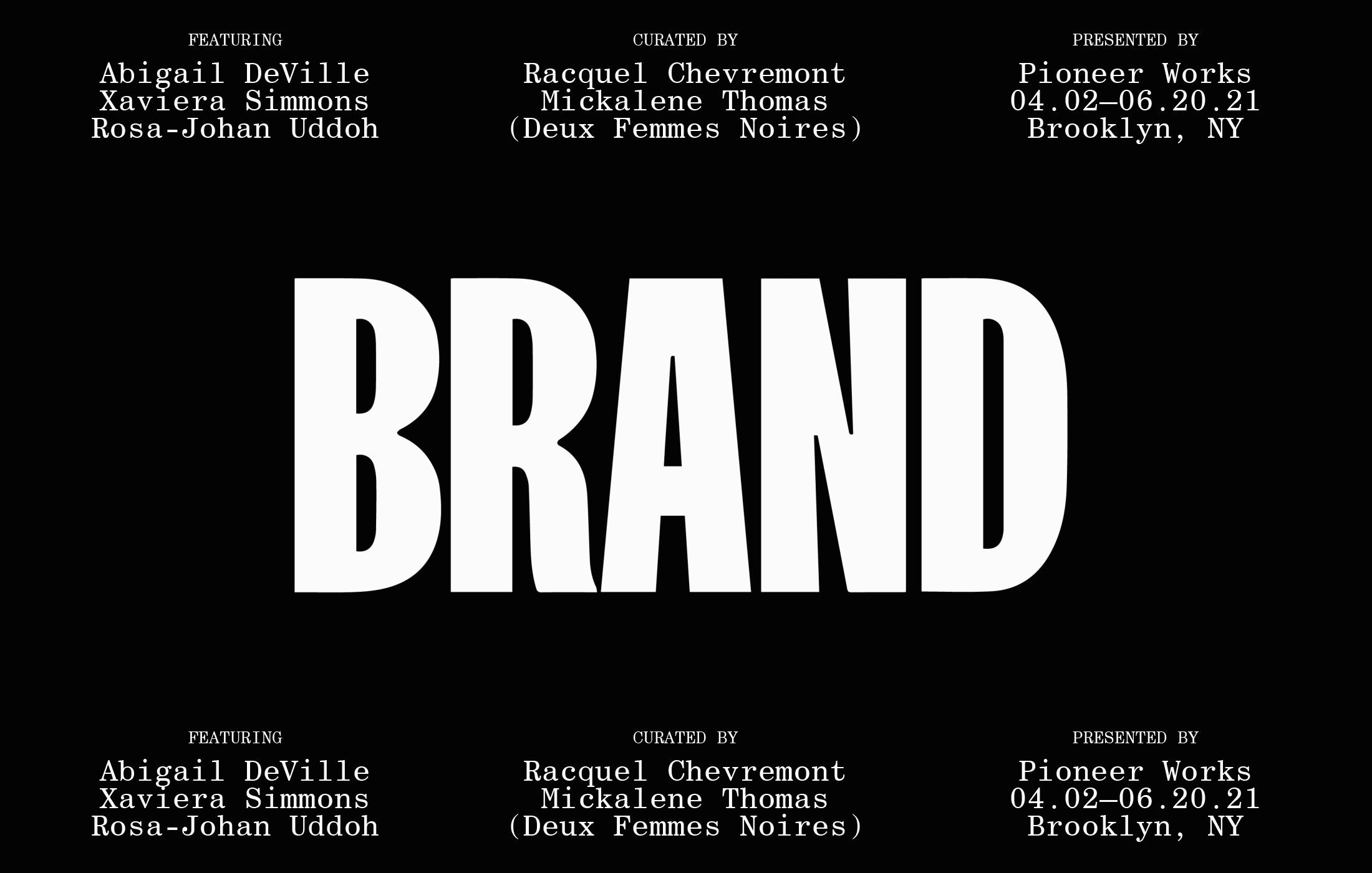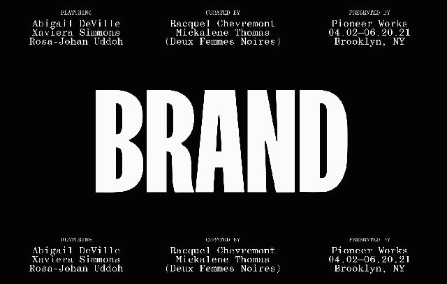 Brand New Heavies is Chevremont and Thomas’s second curatorial project together; the first, The Aesthetics of Matter,featured young, rising talent and premiered at the Volta New York Art Fair. For this exhibition, Deux Femmes Noires wanted to work with three ambitious artists—DeVille, Simmons, and Uddoh—who were selected for their distinct visionary practices, individual ability to tackle monumental scales (both conceptual and physical), and their rigorous investigation into the politics around the Black body. Deux Femme Noires knew these artists would embrace the opportunity Pioneer Works offers as a community-engaged, artist-focused institution with a distinct physical space.