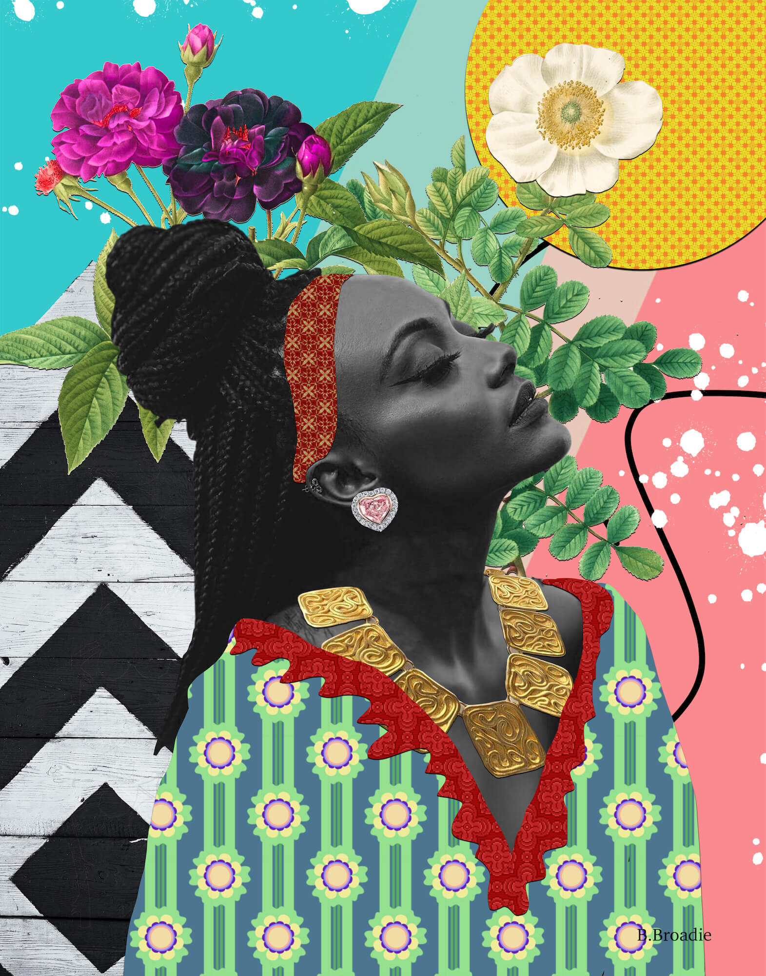 Prince George’s County, MD Graphic Artist Broadie fell in love with art when he was a child in elementary school. The moment his teacher gave him a pair of scissors to start cutting shapes, he knew he wanted to create. He still remembers using cotton balls, popsicle sticks, paint, and glitter to create a snowman. He dreamed of having his designs on billboards for people to stop and stare. He was first introduced to digital art in 2005 attending Bowie State University, a Historical Black College (HBCU), majoring in Fine Arts. Through his coursework, Broadie’s skills in digital art using photoshop were shaped. While at Bowie State University he took classes in photography, sculpture, and drawing but something about digital art felt natural to him. Broadie shows his love for digital art by blending his skills in graphic design and love of mixed media, bringing about a perfect marriage of his two passions. Broadie’s inspiration has been birthed from the richness of Black History, the past, present and possibilities of the future. While showing how African Americans unique black fashion has impacted the world.