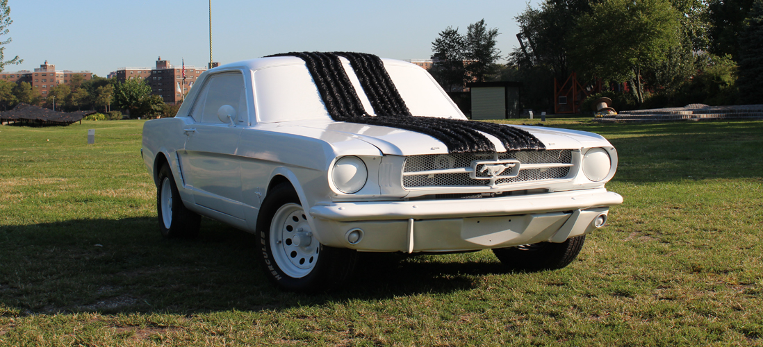 With its grid of repeated desk forms, Brier Patch alludes to the typical classroom organizational structure of row upon row of desks or even the regimented arrangement of tombstones in a military cemetery. In Hayden’s installation, each desk, like a tombstone, can be seen as a stand-in for an individual. The chaotic branch structures disrupt the intended placidity of the formation, uniting individual elements to form one interconnected community. The project simultaneously signifies intellectual development and stasis—dual outcomes of an education system where some excel and others are left behind. For Hayden, the symbolism also extends to the financial entanglement of student loan debt incurred in the pursuit of higher education.