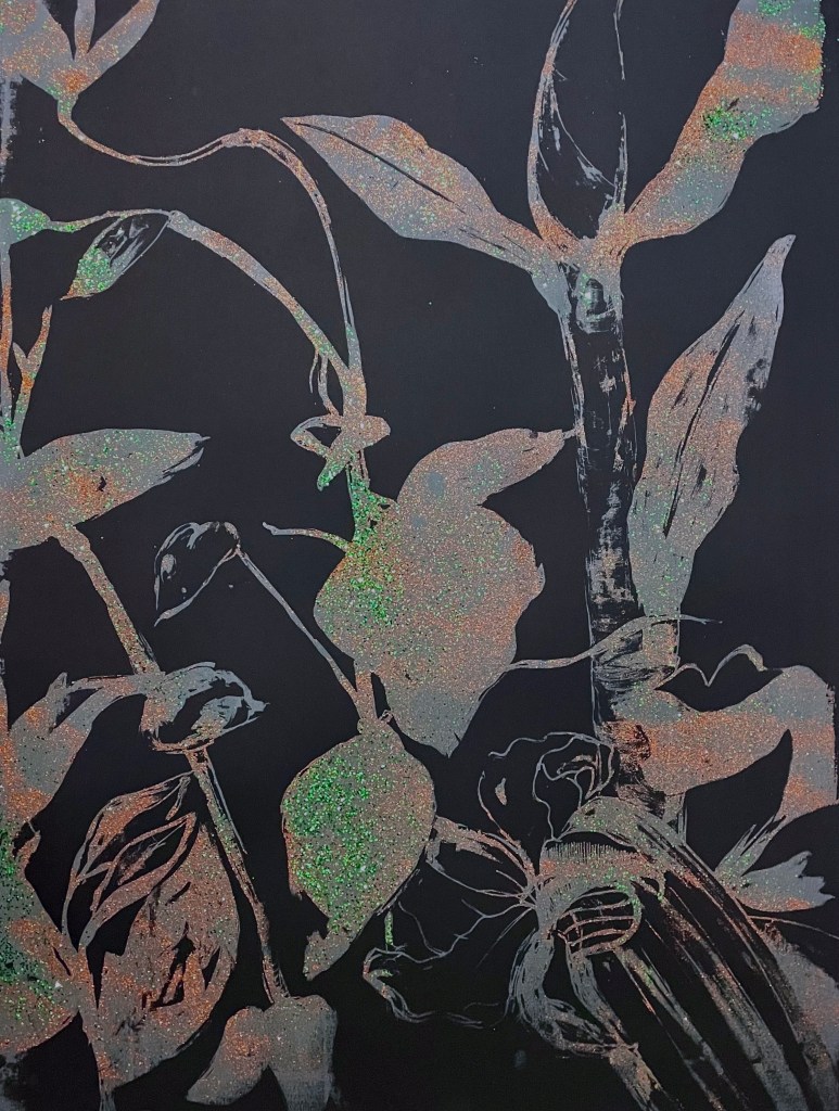 The Three Sisters print series are screen prints based on drawings of the three staples crops known as the three sisters – beans, squash, and corn