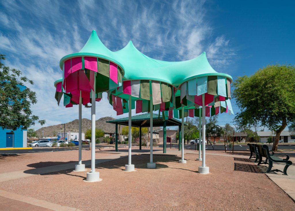 The City’s public art program has a long history of commissioning artist-designed shade structures and has committed funding for shade, cooling, and heat mitigation projects in its Public Art Plan. Depending on the success of ¡Sombra! Experiments in Shade, some artists may be commissioned to turn their projects into permanent installations. Phoenix Office of Arts and Culture will work closely with our partners to determine which projects, if any, are suitable candidates for permanent installation.