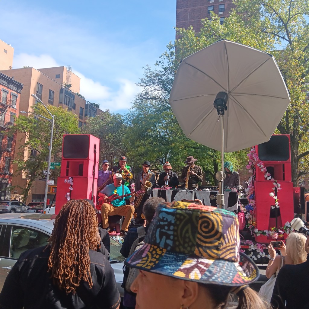 writer, bandleader, and cultural theorist Gregory Stephen ‘Ionman’ Tate, whose work reshaped Black music and thought. The day featured a major new public artwork by acclaimed artist Brett Cook as well as live performances and from Melvin Gibbs for Honk NYC! and Burnt Sugar The Arkestra Chamber (BSAC), the ensemble Tate founded.