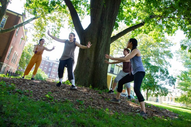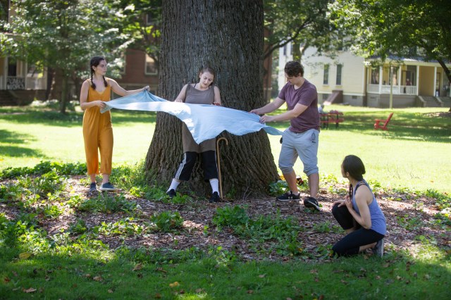 “This is the Time to Dance” was conceived by Hyman with text and movement developed by the ensemble of actor/dancers under Hyman’s direction: Hallie Chametzky, Grayson Bradshaw, Aviya Hernstadt, Aria Roach, and Stephanie Mizrahi. Performing in the August 28th showing are Chametzky, Bradshaw, Roach and, new to the ensemble, Glenna Yu. In addition, an original musical score by noted NYC musician/composer William Catanzaro, will be performed live by Catanzaro as he weaves around the performers as they move through the night.
