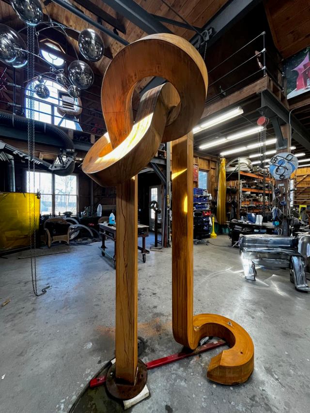 His technique is brute force, decided in the moment. He is enticed by the interesting shapes of metal, the patterns, textures, and grain and is fascinated with form. It is his aspiration to create sculptures that are completely unique, that no one has done before. He resists conformity and mass production, and his results are as individual as he is.