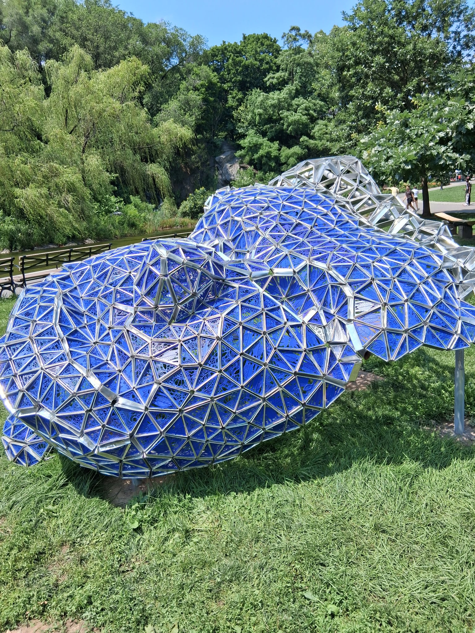 In Defense of the Human Spirit is an imaginative reaction to the fortresses that were built on Governors Island in the early 1800s to protect New York’s harbor from any foreign invasion. Each piece int this exhibition, thoughtfully curated by Savona Bailey-McClain of the West Harlem Art Fund and Christina Goldberg of Studio 80 + Sculpture Grounds, conveys movement, a twisting and bending of the strongest of materials, inward and out, stretching towards and facing a city that is continually evolving. The panoramic view from Governors Island facing the ever-changing skyline of New York is a reminder that in the face of adversity, there is nothing more resilient than the human spirit.