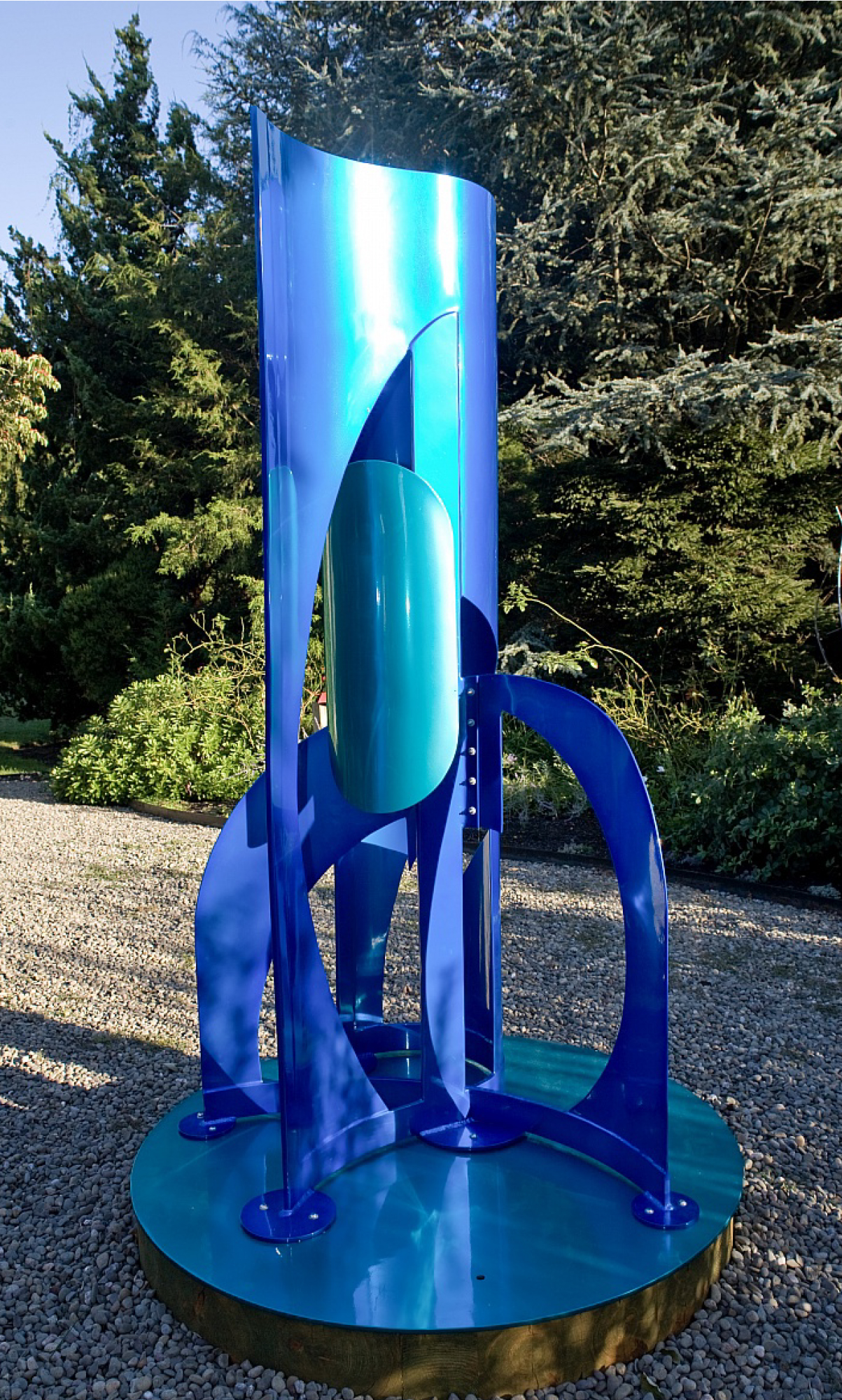Both Boro’s work Regatta III/8 Candy Blue & Teal, 2008 (Powder Coated Rolled Aluminum 8’6″ x 4’6″ x 5) and Brody’s Garden Sentinel (12 – 8’ x 55″) aluminum quadrupeds held together by various hardware) will be presented on Governors Island in the historic district of Nolan Park.